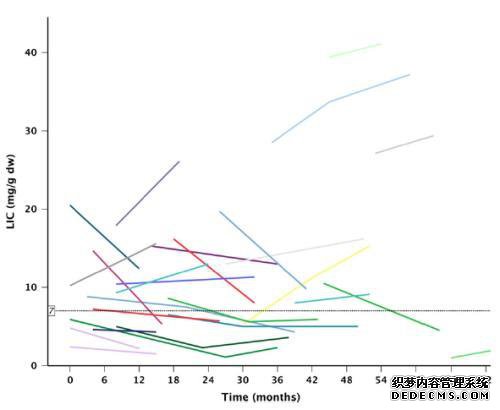 国内外文献和临床实践的完整报道,T2 *预测误差与LIC肝活检一致,MRI的定量检测可更好地反映肝铁过量的程度并评估预后可以和SF比较。